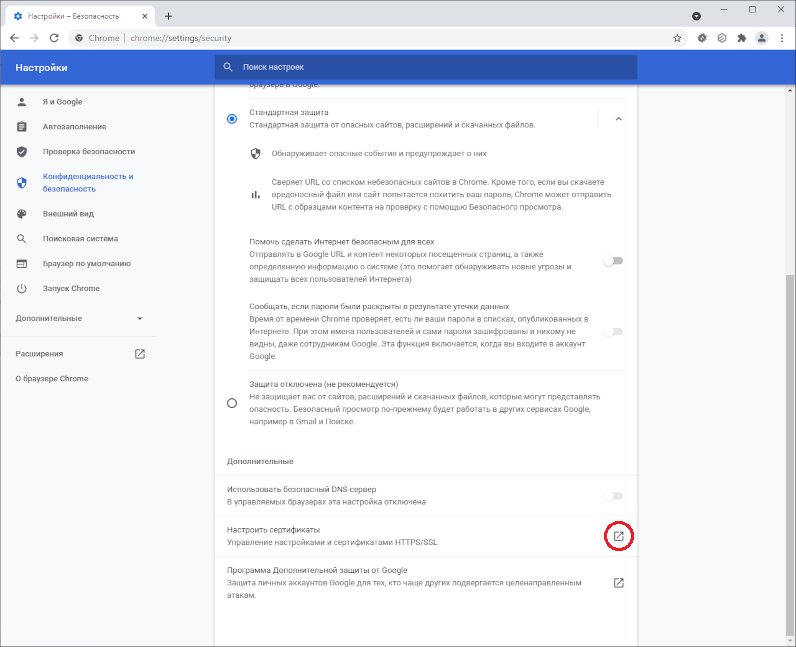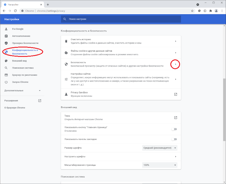 - Перейдите к разделу "Конфиденциальность и безопасность", затем нажмите на пункт "Безопасность".